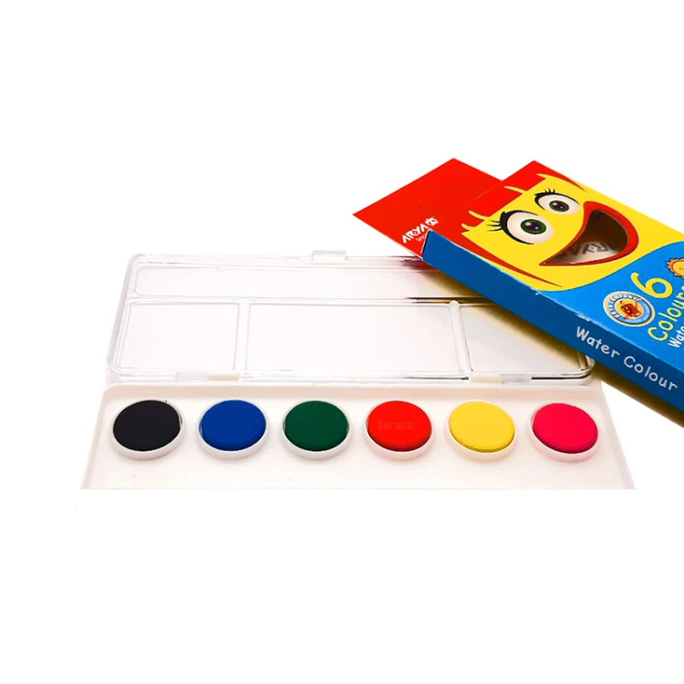 . آبرنگ 6 رنگ آریا گزینه ی مناسب برای هدیه و بازی بچه ها و پرورش خلاقیت و هنر در آنها. شامل رنگ های صورتی-زرد-قرمز-سبز-آبی-مشکی میباشد و بدون قلم مو است
