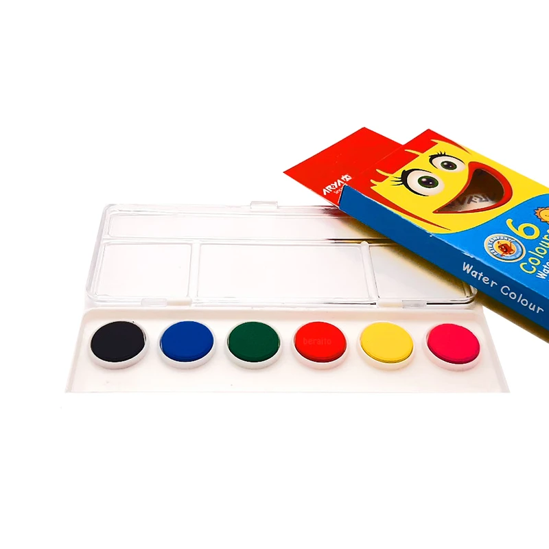 . آبرنگ 6 رنگ آریا گزینه ی مناسب برای هدیه و بازی بچه ها و پرورش خلاقیت و هنر در آنها. شامل رنگ های صورتی-زرد-قرمز-سبز-آبی-مشکی میباشد و بدون قلم مو است